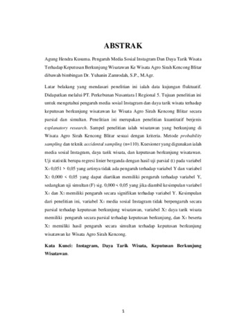 Kusuma, Hendra Agung (2025) PENGARUH MEDIA SOSIAL INSTAGRAM DAN DAYA TARIK WISATA TERHADAP KEPUTUSAN BERKUNJUNG WISATAWAN KE WISATA AGRO SIRAH KENCONG BLITAR. Other thesis, Universitas Islam Balitar, Blitar.