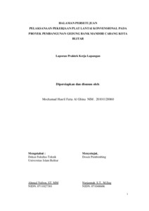 fatta alghina, Hasril (2025) PELAKSANAAN PEKERJAAN PLAT LANTAI KONVENSIONAL PADA PROYEK PEMBANGUNAN GEDUNG BANK MANDIRI CABANG KOTA BLITAR. Technical Report. UNIVERSITAS ISLAM BALITAR, BLITAR. (Unpublished)