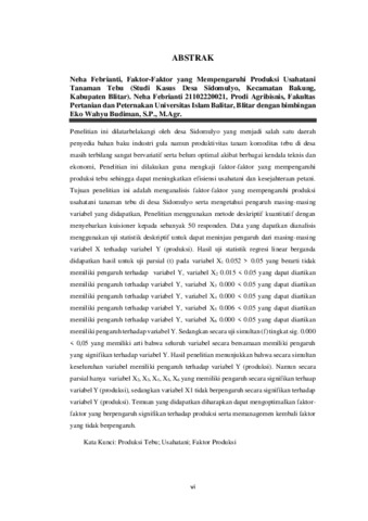 Febrianti, Neha (2025) FAKTOR-FAKTOR YANG MEMPENGARUHI PRODUKSI USAHATANI TANAMAN TEBU(Studi Kasus Pada Desa Sidomulyo, Kecamatan Bakung, Kabupaten Blitar). Other thesis, Universitas Islam Balitar, Blitar.