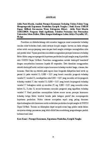 Kata Kunci : Persepsi Konsumen, Keputusan Pembelian, Keripik Nangka