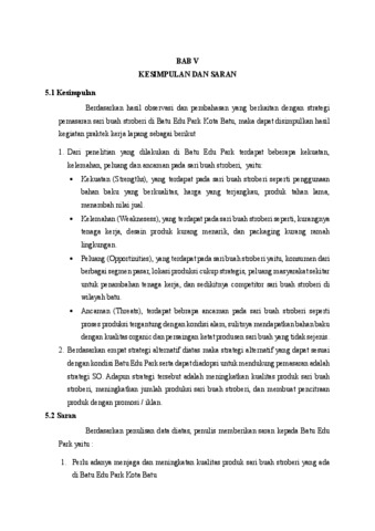 Raju Tirawhida Sektiana, Raju TirawhidabSektiana (2025) STRATEGI PENGEMBANGAN PRODUK SARI BUAH STROBERI DI BATU EDU PARK P4S ALAM AGRO BATU JAWA TIMUR. Technical Report. Universitas Islam Balitar Blitar. (Unpublished)