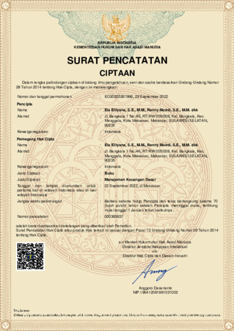 Buku ini disusun untuk membantu mahasiswa mempelajari Manajemen Keuangan Dasar, sehingga mahasiswa mudah memahami dan mengerti materi materi manajemen keuangan, sebelum memplajari materi keuangan menengah dan manajemen keuangan lanjutan. Sangat penting untuk dipahami materi manajemen keuangan dasar ini bagi mahasiswa manajemen, terlebih lagi untuk konsentrasi manajemen keuangan.