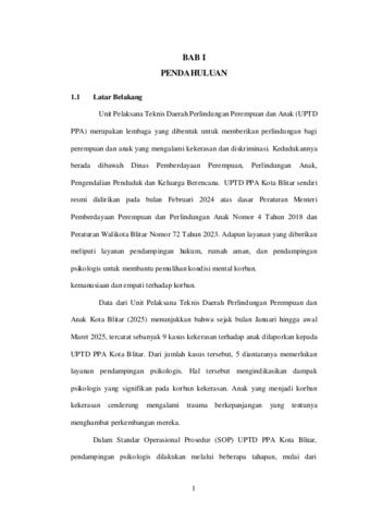 Lintang, Rachel Anggita and UNSPECIFIED and UNSPECIFIED and UNSPECIFIED (2025) Analisis Tindakan Sosial dalam Pendampingan Psikologis bagi Anak Korban Kekerasan di Unit Pelaksana Teknis Daerah Perlindungan Perempuan dan Anak (UPTD PPA) Kota Blitar Berdasarkan Teori Max Weber. Other thesis, UNIVERSITAS ISLAM BALITAR, BLITAR.