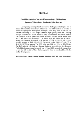 Layer poultry farming often faces various challenges, including the risk of financial loss and business closure. Therefore, a feasibility analysis is essential to determine appropriate development strategies. This study aims to analyze the business feasibility of Mr. Mugi Santoso’s layer poultry farm in Tumpang Village, Talun District, Blitar Regency, using a quantitative descriptive method. The analysis includes production costs, revenue, income, Break Even Point (BEP), R/C ratio, and profitability. The results show that during the 2022–2025 period, the business generated total revenue of IDR 8,378,458,141, with a monthly average of IDR 322.248.390. Net profit totaled IDR 2.557.146.177 or IDR 98.351.776 per month. The BEP value was IDR 16.113/kg or 250.350 kg. The R/C ratio of 1.44 indicates that the business is feasible for development. Profitability from gross and net profit was 44% and 44% respectively, categorized as low but still positive. Thus, the layer poultry farm is considered feasible for further development.