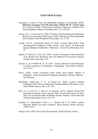 Hanufi, Mukhamad Khamim (2025) ANALISIS KELAYAKAN USAHA PETERNAKAN AYAM PETELUR BAPAK MUGI SANTOSO DESA TUMPANG KECAMATAN TALUN KABUPATEN BLITAR. Other thesis, UNIVERSITAS ISLAM BALITAR,BLITAR.