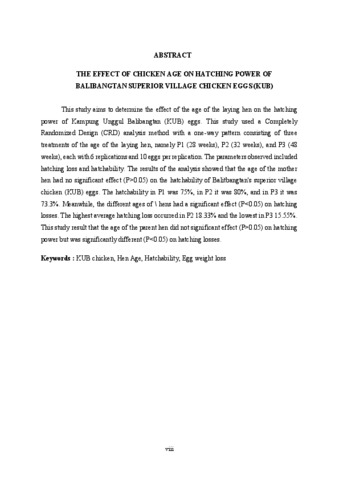 Sadhiki, Johan (2025) PENGARUH UMUR AYAM TERHADAP DAYA TETAS TELUR AYAM KAMPUNG UNGGUL BALIBANGTAN (KUB). Other thesis, Universitas Islam Balitar.