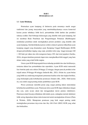 Saputra, Kurnia Senja Caesar (2025) PENGARUH UMUR AYAM TERHADAP FERTILITAS TELUR AYAM KAMPUNG UNGGUL BALITBANGTAN (KUB). Other thesis, Universitas Islam Balitar Blitar.