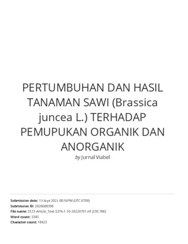 PERTUMBUHAN DAN HASIL TANAMAN SAWI (Brassica juncea L.) TERHADAP PEMUPUKAN ORGANIK DAN ANORGANIK.pdf