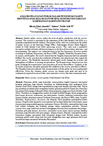 Amanda, Silvana Kissy (2025) ANALISIS PELAYANAN PUBLIK DALAM PENGURUSAN KARTU IDENTITAS ANAK (KIA) DI KANTOR DESA DAWUHAN KECAMATAN KADEMANGAN KABUPATEN BLITAR. Other thesis, Universitas Islam Balitar.