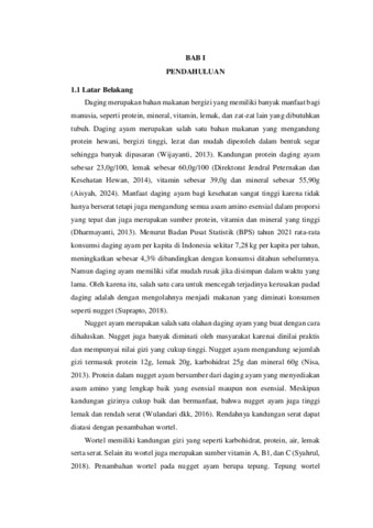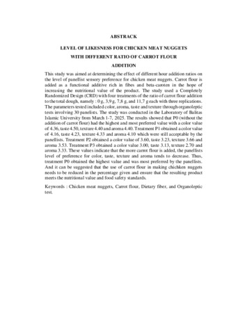 Kata kunci: Nugget daging ayam, Tepung Wortel, Serat pangan, dan Uji organoleptic.