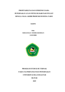 Rohman, Mohammad Choirur (2025) PROFITABILITAS DAN EFISIENSI USAHA PETERNAKAN AYAM PETELUR DARI FASE PULLET HINGGA MASA AKHIR PRODUKSI DI HUDA FARM. Other thesis, Universitas Islam Balitar, Blitar.