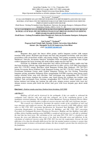 Suci, Lestari and nurjanah, nurjanah (2021) EVALUASI PERENCANAAN STRUKTUR BANGUNAN BETON BERTULANG SNI 2013 DAN RANGKA ATAP BAJA SNI 2015 MENGGUNAKAN SAP 2000 PADA BANGUNAN GEDUNG PERTANAHAN KABUPATEN BLITAR (Studi Kasus : Gedung Pertanahan Jalan Manukwari, Satreyan, Kecamatan Kanigoro, Kabupaten Blitar). jurnal Qua Tenika, 11 (02): 6. pp. 71-80. ISSN 2527-3892