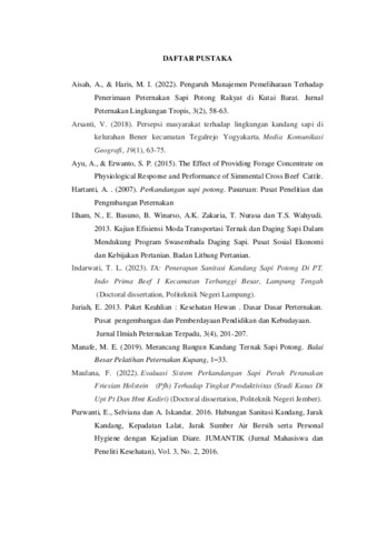 agrilka, vidma agrilka (2025) manajemen perkandangan sapi potong di pt sedana peternak sentosa kecamatan kesamben kabupaten jombang jawa timur. Technical Report. UNIVERSITAS ISLAM BALITAR, BLITAR. (Unpublished)