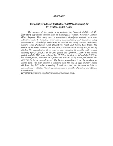 Mu'jizat, Fatihul (2025) ANALISIS USAHA PETERNAKAN AYAM PETELUR DI CV.NUR MAKMUR FARM. Other thesis, Universitas Islam Balitar, Blitar.