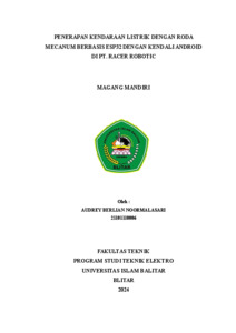 Noormalasari, Audrey Berlian (2025) PENERAPAN KENDARAAN LISTRIK DENGAN RODA MECANUM BERBASIS ESP32 DENGAN KENDALI ANDROID DI PT. RACER ROBOTIC. Technical Report. UNIVERSITAS ISLAM BALITAR. (Unpublished)