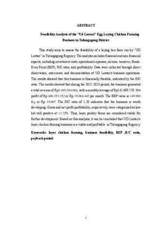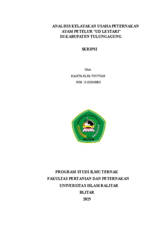Yustyan, Ragita Elfa (2025) ANALISIS KELAYAKAN USAHA PETERNAKAN AYAM PETELUR “UD LESTARI” DI KABUPATEN TULUNGAGUNG. Other thesis, UNIVERSITAS ISLAM BALITAR BLITAR.