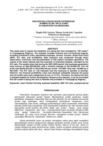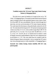 This study aims to assess the feasibility of a laying hen farm managed by "UD Lestari" in Tulungagung Regency. The analysis includes financial and non-financial aspects, including investment costs, operational expenses, income, turnover, Break-Even Point (BEP), R/C ratio, and profitability. Data collection was conducted through direct observation, interviews, and documentation of UD Lestari's business operations. The results of the study indicate that this business is financially feasible, indicated by the R/C ratio. The results show that during the 2021-2023 period, this business generated a total revenue of Rp3,495,584,064, with a monthly average of Rp142,609,570. The net profit was Rp400,353,352 or Rp19,064,445 per month. The BEP value was 149,980 kg or Rp19,907. The R/C ratio of 1.20 indicates that this business is feasible to develop. However, the financial profitability value was declared unfeasible because the gross and net profits were each categorized as low, at 13.72%. Therefore, the laying hen farm is deemed feasible for further development. Based on this analysis, it can be concluded that UD Lestari's laying hen farm is feasible and profitable in Tulungagung Regency.