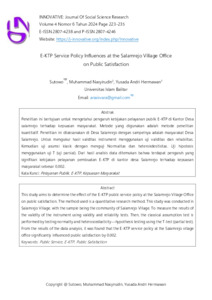 Penelitian ini bertujuan untuk mengetahui pengaruh kebijakan pelayanan publik E-KTP di Kantor Desa