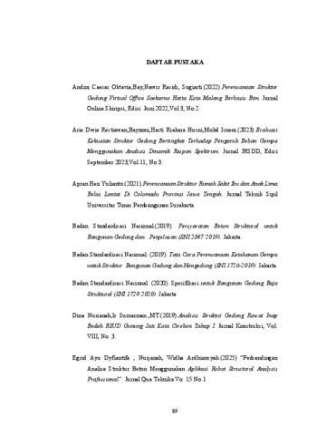 SNI 1727:2020 untuk pembebanan minimum. Fokus kajian terbatas pada struktur