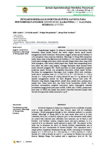 Supini, Vidi (2025) PENGARUH BERBAGAI KONSENTRASI PUPUK GAVIOTA PADA PERTUMBUHAN ANGGREK DENDROBIUM (LASIANTERA) PADA BUDIDAYA IN VITRO. Other thesis, Universitas Islam Balitar.