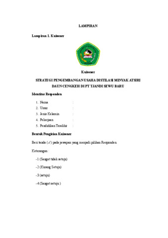 Adiyanto, Muhammad Diki (2025) STRATEGI PENGEMBANGAN USAHA DISTILASI MINYAK ATSIRI DAUN CENGKEH DI PT. TJANDI SEWU BARU. Other thesis, Universitas Islam Balitar.