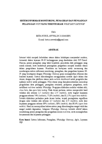 Beta, Nurul Awwalin (2025) SISTEM INFORMASI MONITORING, PENAGIHAN DAN PENGADUAN PELANGGAN WIFI YANG TERINTEGRASI WHATSAPP GATEWAY. Other thesis, Universitas Islam Balitar Blitar.