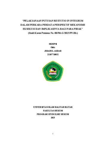 Kata Kunci: Restitutio In Integrum, pelaksanaan putusan, lelang batal demi hukum, eksekusi perdata, perlindungan hukum