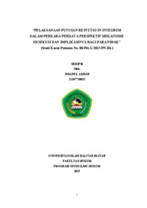JIHADUL, AKBAR (2025) “PELAKSANAAN PUTUSAN RESTUTIO IN INTEGRUM DALAM PERKARA PERDATA PERSPEKTIF MEKANISME EKSEKUSI DAN IMPLIKASINYA BAGI PARA PIHAK” (Studi Kasus Putusan No. 08/Pdt.G/2015/PN.Blt.). Other thesis, UNIVERSITAS ISLAM BALITAR, BLITAR.