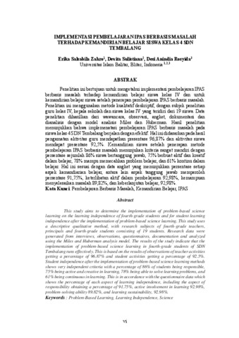 Keywords : Problem-Based Learning, Learning Independence, Science