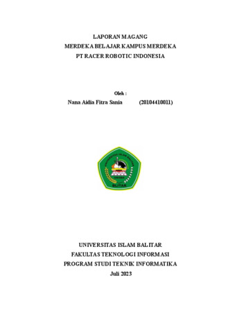 Sania, Nana Aidia Fitra (2024) LAPORAN MAGANG MERDEKA BELAJAR KAMPUS MERDEKA PT RACER ROBOTIC INDONESIA. Technical Report. UNIVERSITAS ISLAM BALITAR, BLITAR. (Unpublished)