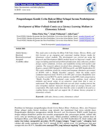 Mitra, Nisa (2025) PENGEMBANGAN KOMIK CERITA RAKYAT BLITAR (PAHLAWAN, MITOS, DAN PEMBELAJARAN HIDUP) UNTUK KEGIATAN LITERASI SISWA SEKOLAH DASAR. Other thesis, Universitas Islam Balitar.