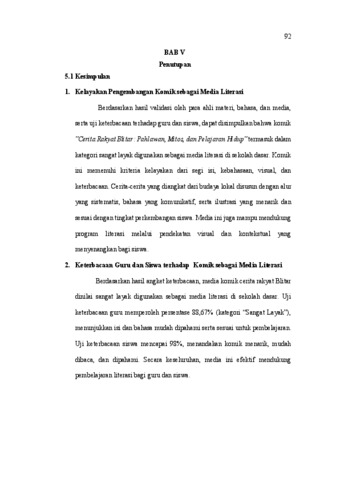 memperoleh skor 88,67%, dan oleh siswa mencapai 98%, yang keduanya tergolong “Sangat Layak.” Media komik yang dikembangkan memadukan unsur budaya lokal dan nilai-nilai moral dalam bentuk visual yang