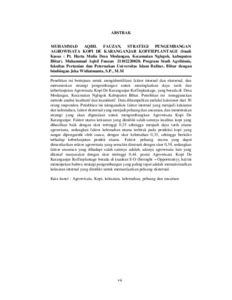 Kata kunci : Agrowisata, Kopi, kekuatan, kelemahan, peluang dan ancaman