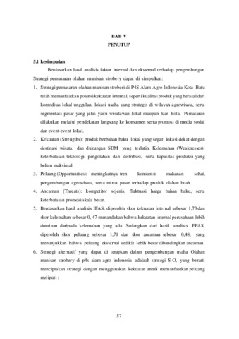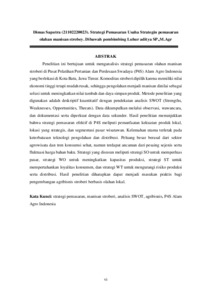 Kata Kunci: strategi pemasaran, manisan stroberi, analisis SWOT, agribisnis, P4S Alam Agro Indonesia
