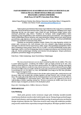 Febrianti, Afeleni Trijaya FAKTOR KRIMINOLOGI ANAK BERHADAPAN DENGAN HUKUM DALAM TINDAK PIDANA PERSETUBUHAN DALAM PERKARA NOMOR BP/62/IX/RES.1.24/2024/SATRESKRIM (Studi Kasus di Unit PPA Satreskrim Polres Blitar). FAKTOR KRIMINOLOGI ANAK BERHADAPAN DENGAN HUKUM DALAM TINDAK PIDANA PERSETUBUHAN DALAM PERKARA NOMOR BP/62/IX/RES.1.24/2024/SATRESKRIM (Studi Kasus di Unit PPA Satreskrim Polres Blitar). (Unpublished)