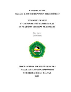 MAGVIRA, RIZKA (2023) LAPORAN AKHIR MAGANG & STUDI INDEPENDEN BERSERTIFIKAT WEB DEVELOPMENT STUDI INDEPENDEN BERSERTIFIKAT DI PT KINEMA SYSTRANS MULTIMEDIA. Technical Report. UNIVERSITAS ISLAM BALITAR, BLITAR. (Unpublished)