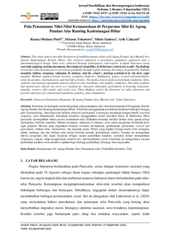 Reana Oktiana Putri, Reana and Miranu Triantoro, Miranu and Minto Santoso, Minto (2025) Pola Penanaman Nilai Kemannusiaan di Perguruan Silat Ki Ageng Pandan Alas Ranting Kademangan Blitar. Other thesis, UNIVERSITAS ISLAM BALITAR.