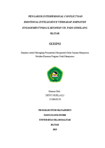 Nurlaili, Dewi (2025) PENGARUH INTERPERSONAL CONFLICT DAN EMOTIONAL INTELLIGENCE TERHADAP EMPLOYEE ENGAGEMENT PADA KARYAWAN UD. PADI GEMILANG BLITAR. Other thesis, Universitas Islam Balitar.