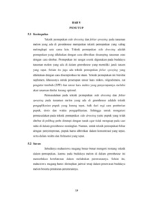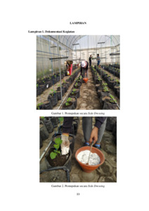 Tanaman melon (Cucumis melo L) merupakan tanaman buah dari keluarga Cucurbitaceae. Melon merupakan salah satu tanaman hortikultura yang banyak digemari oleh masyarakat karena rasanya yang manis dan menyegarkan saat dikonsumsi. Akan tetapi, tanaman melon peka terhadap perubahan iklim dan mudah sekali terserang penyakit. Sehingga memerlukan penanganan yang lebih intensif. Dengan budidaya melon di dalam greenhouse adalah upaya untuk meningkatkan hasil produk yang berkualitas. Praktik Kerja Lapang ini bertujuan mengetahui teknik pemupukan side dressing dan foliar spraying yang digunakan untuk budidaya melon (Cucumis melo L.) di dalam greenhouse serta permasalahan dari teknik side dressing dan foliar spraying. Kegiatan Praktik Kerja Lapang dilaksanakan di Greenhouse Universitas Islam Balitar. Pelaksanaan kegiatan Praktik Kerja Lapang ini akan dilakukan dengan cara ikut serta dalam kegiatan oprasional rutin pada hari kerja di Greenhouse Universitas Islam Balitar, serta pengumpulan data dilakukan melalui pengamatan, wawancara dan diskusi secara langsung dengan pembimbing lapang dan teman-teman sesama magang, hasil diskusi dan informasi yang telah diperoleh akan dibandingkan dengan literatur, agar mendapatkan data yang akurat. Teknik pemupukan side dressing dan foliar spraying pada tanaman melon yang ada di greenhouse merupakan teknik pemupukan yang saling melengkapi satu sama lain. Teknik pemupukan side dressing adalah pemupukan yang dilakukan dengan cara diberikan disamping tanaman atau dengan cara ditebar. Pemupukan ini sangat cocok digunakan pada budidaya tanaman melon yang ada di dalam greenhouse yang memiliki jarak tanam yang rapat. Selain itu juga ada teknik pemupukan foliar spraying yang dilakukan dengan cara disemprotkan ke daun. Teknik pemupukan ini bersifat suplemen, khususnya untuk penerapan unsur hara mikro, oligoelemen, zat pengatur tumbuh (ZPT) dan unsur hara makro yang penyerapannya melalui akar tanaman dinilai kurang optimal. Permasalahan pada teknik pemupukan side dressing dan foliar spraying pada tanaman melon yang ada di greenhouse adalah teknik pengaplikasian pupuk yang kurang tepat, baik dari segi cara pemberian pupuk, dosis dan waktu pengaplikasian. Sehingga untuk mengatasi permasalahan pada teknik pemupukan side dressing yaitu pupuk yang telah ditebar di polibag perlu ditutupi dengan tanah agar tidak menguap pada saat suhu di dalam greenhouse meningkat. Namun, untuk teknik pemupukan foliar dengan penyemprotan, pupuk harus diberikan dalam konsentrasi yang tepat, serta dalam waktu dan frekuensi yang tepat.