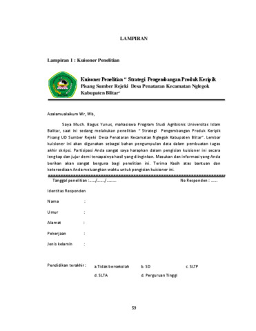 Much. Bagus, Yunus (2024) STRATEGI PENGEMBANGAN PRODUK KERIPIK PISANG UD SUMBER REJEKI DESA PENATARAN KECAMATAN NGLEGOK KABUPATEN BLITAR. Other thesis, Universitas Islam Balitar Blitar.
