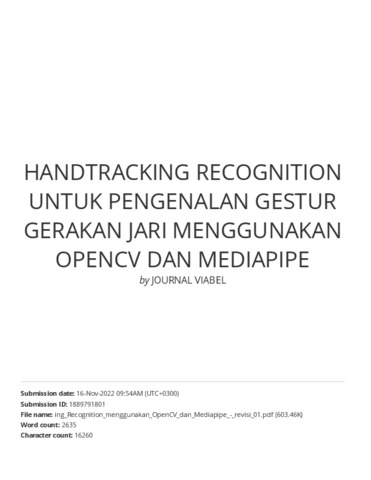 Check plagiasi - HANDTRACKING RECOGNITION.pdf - Published Version