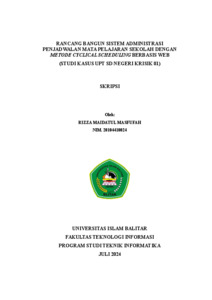 Mafufah, Rizza and Kusuma, Abdi and Puspitasari, Wahyu (2024) RANCANG BANGUN SISTEM ADMINISTRASI PENJADWALAN MATA PELAJARAN SEKOLAH DENGAN METODE CYCLICAL SCHEDULING BERBASIS WEB (STUDI KASUS UPT SD NEGERI KRISIK 01). Other thesis, Universitas Islam Balitar.