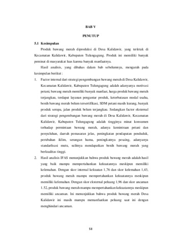 untuk mengetahui faktor internal dan eksternal bawang merah, serta strategi