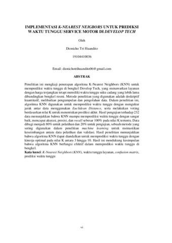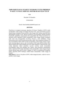 Tri Huandito, Dionicho (2024) IMPLEMENTASI K-NEAREST NEIGBORS UNTUK PREDIKSI WAKTU TUNGGU SERVICE MOTOR DI DEVELOP TECH. Other thesis, UNIVERSITAS ISLAM BALITAR.