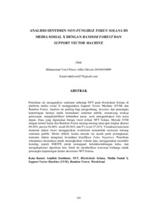 Devani, Muhammad Verel Prisco Alfito and Chulkamdi, Mukh. Taufik and Rahmat, Mohammad Faried (2024) ANALISIS SENTIMEN NON-FUNGIBLE TOKEN SOLANA DI MEDIA SOSIAL X DENGAN RANDOM FOREST DAN SUPPORT VECTOR MACHINE. Other thesis, Universitas Islam Balitar.