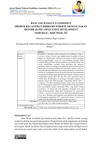 Muhamad, Mahasin Bagus Saputro (2024) RANCANG BANGUN E-COMMERCE PRODUK KECANTIKAN BERBASIS WEBSITE MENGGUNAKAN METODE RAPID APPLICATION DEVELOPMENT. Other thesis, Universitas Islam Balitar, Blitar.