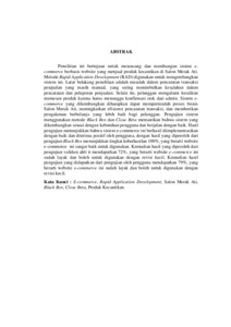Penelitian ini bertujuan untuk merancang dan membangun sistem ecommerce berbasis website yang menjual produk kecantikan di Salon Merak Ati. Metode Rapid Application Development (RAD) digunakan untuk mengembangkan sistem ini. Latar belakang penelitian adalah masalah dalam pencatatan transaksi penjualan yang masih manual, yang sering menimbulkan kesalahan dalam pencatatan dan pelaporan penjualan. Selain itu, pelanggan mengalami kesulitan memesan produk karena harus menunggu konfirmasi stok dari admin. Sistem ecommerce yang dikembangkan diharapkan dapat mempermudah proses bisnis Salon Merak Ati, meningkatkan efisiensi pencatatan transaksi, dan memberikan pengalaman berbelanja yang lebih baik bagi pelanggan. Pengujian sistem menggunakan metode Black Box dan Close Beta memastikan bahwa sistem yang dikembangkan sesuai dengan kebutuhan pengguna dan berjalan dengan baik. Hasil pengujian menunjukkan bahwa sistem e-commerce ini berhasil diimplementasikan dengan baik dan diterima positif oleh pengguna, dengan hasil yang diperoleh dari pengujian Black Box menunjukkan tingkat keberhasilan 100%, yang berarti website e-commerce ini sangat baik untuk digunakan. Kemudian hasil yang diperoleh dari pengujian validasi ahli it mendapatkan 72%, yang berarti website e-commerce ini sudah layak dan boleh untuk digunakan dengan revisi kecil. Kemudian hasil pengujian yang didapatkan dari pengujian oleh pengguna mendapatkan 79%, yang berarti website e-commerce ini sudah layak dan boleh untuk digunakan dengan revisi kecil.