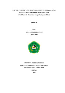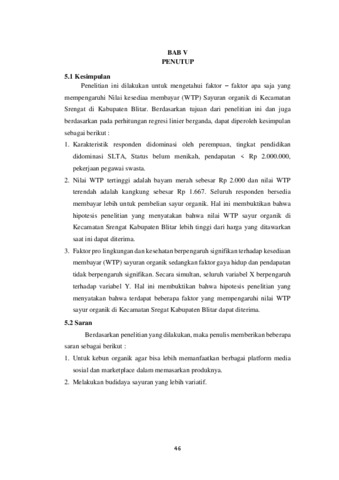 Dermawan, Bima Ariya (2024) FAKTOR – FAKTOR YANG MEMPENGARUHI WTP (Willingness to Pay) SAYURAN ORGANIK DI KEBUN ORGANIK IBUK (Studi Kasus Di Kecamatan Srengat Kabupaten Blitar). Other thesis, Universitas Islam Balitar.