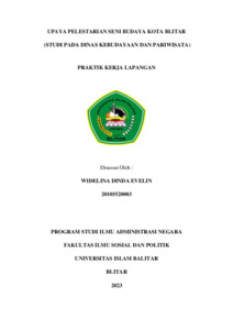 widel, widelina dinda evelin (2024) upaya pelestarian seni budaya kota blitar (studi pada dinas kebudayaan dan pariwisata). Technical Report. UNIVERSITAS ISLAM BALITAR BLITAR. (Unpublished)
