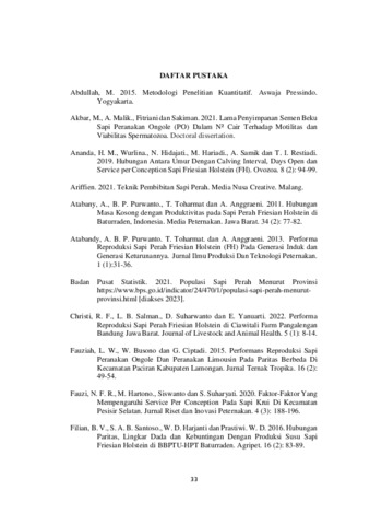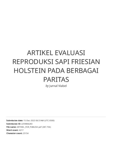 Tujuan penelitian ini adalah untuk mengevaluasi reproduksi sapi Holstein